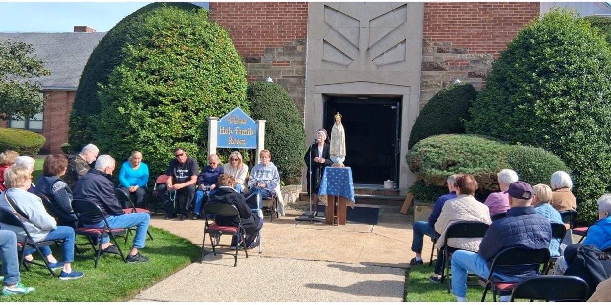On Saturday, October 18th, St. Edwards once again held its public rosary in front of the church on Jackson Avenue in honor of the 108th anniversary of our Lady of Fatima. Once again, Mother Mary came through with a beautiful day for us and allowed many to enjoy the sunshine and warm air as we prayed. The theme of our prayer was for peace throughout the world, and we proudly raised our voices in union to show the world our belief in the strength of the Holy Rosary.
