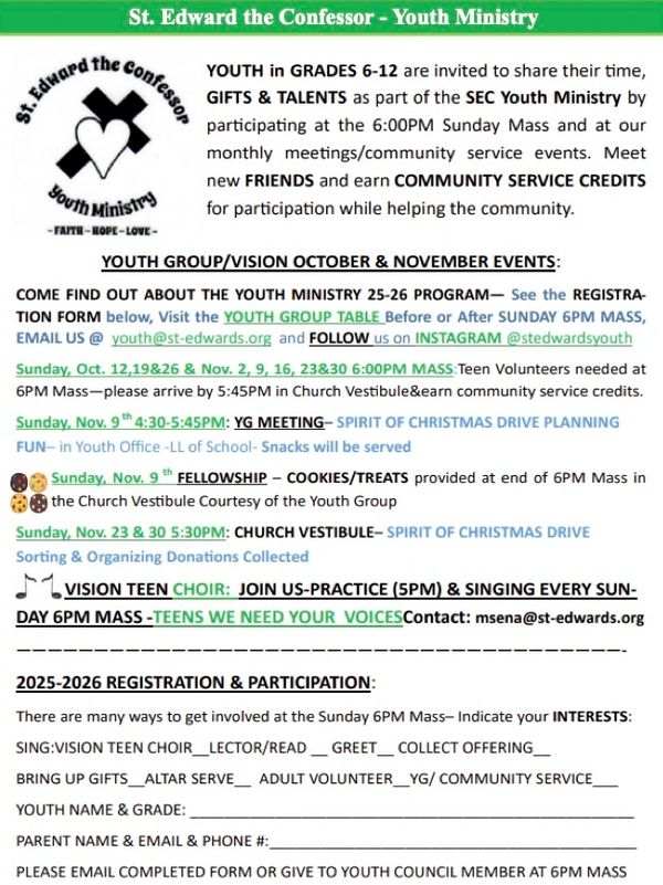 THANK YOU for your generosity to St. Edward the Confessor Church. Your contributions allow the parish to continue its many ministries and maintain the facilities.
