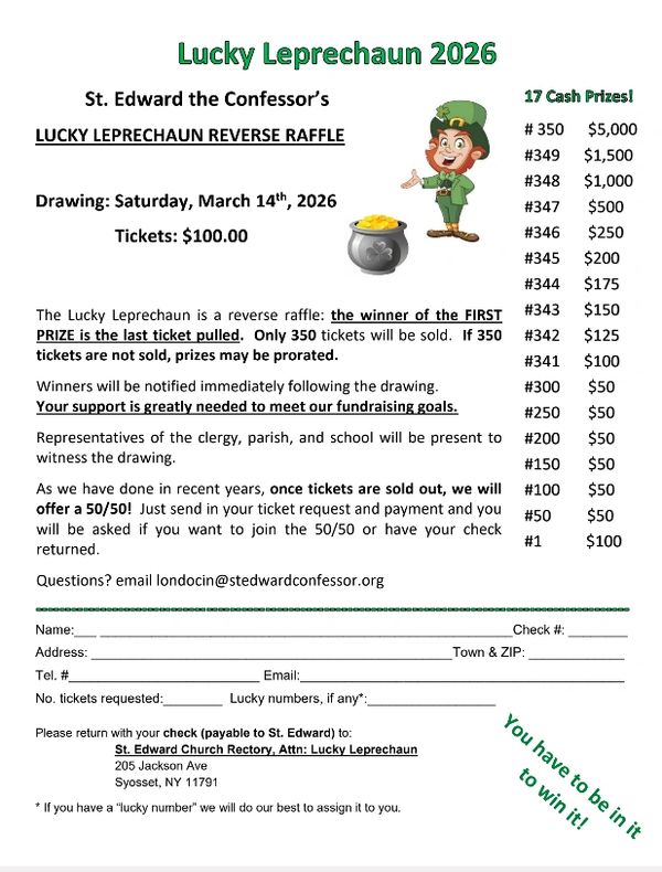 Here is an easy way to make your charitable donation to our parish. You can do this either by credit card or automatic deduction from your checking account. Download the form and send the completed form to the rectory office: St. Edward the Confessor Church, 205 Jackson Avenue, Syosset, NY 11791.